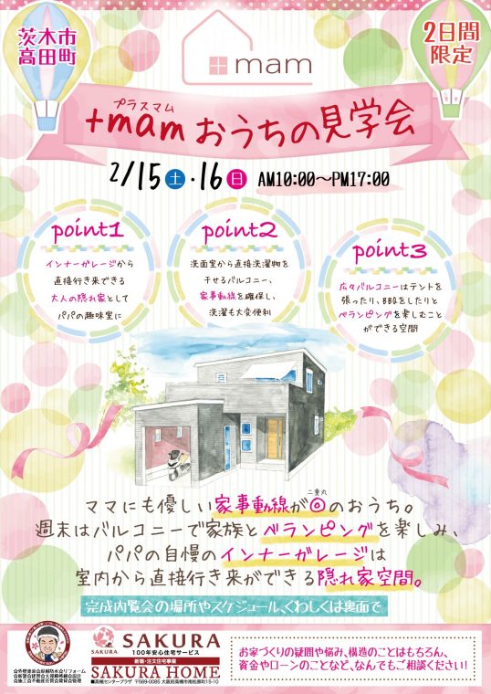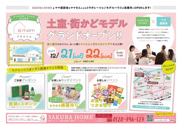 \12/21(土)・22日(日) グランドオープン/高槻市土室町に完成!待ちに待ったSAKURAのモデルハウスがグランドオープンします!『土室・街かどモデル』
