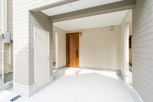 駐車場の外部収納は耐震の為の重要な壁になります。それを利用して収納にしました😊