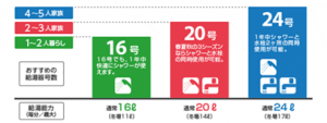 家族が増えた方、お湯を頻繁に使用する方は号数を大きく