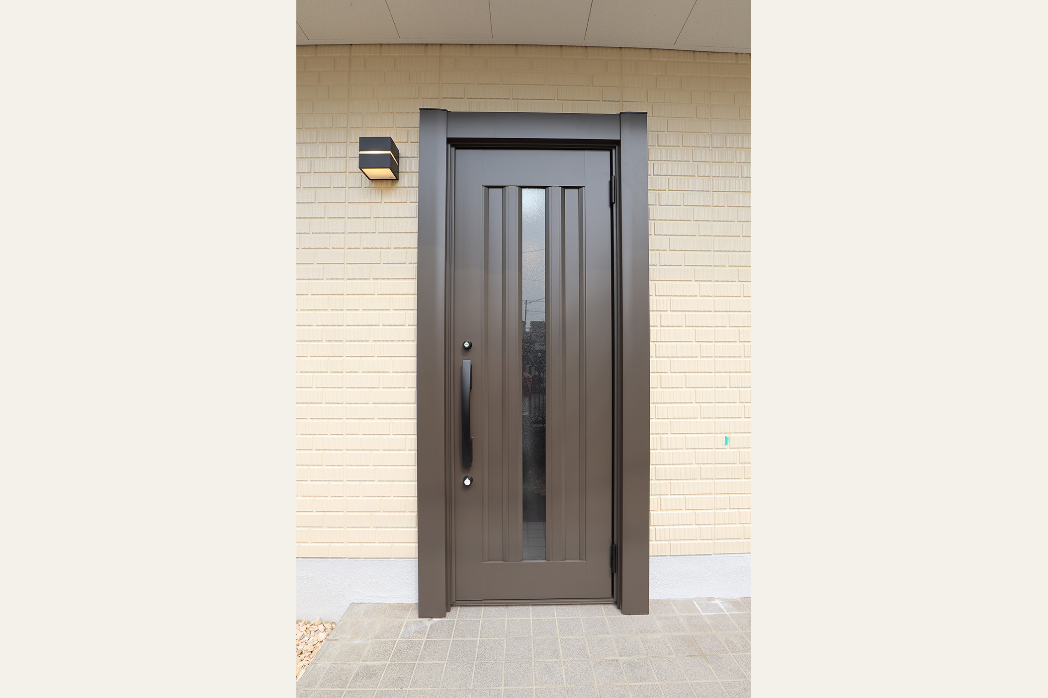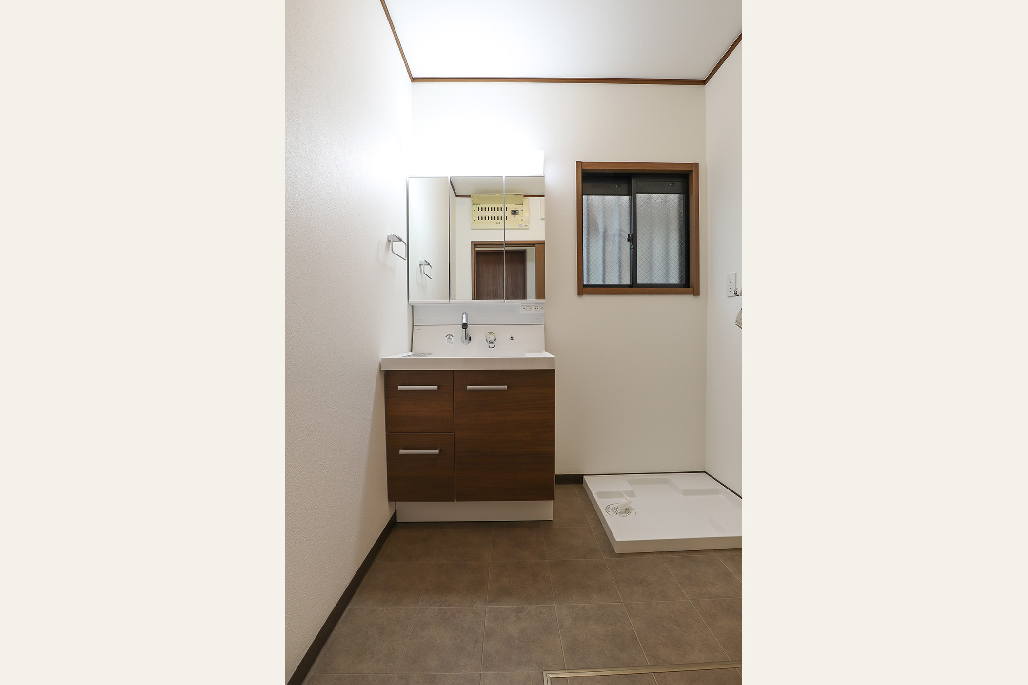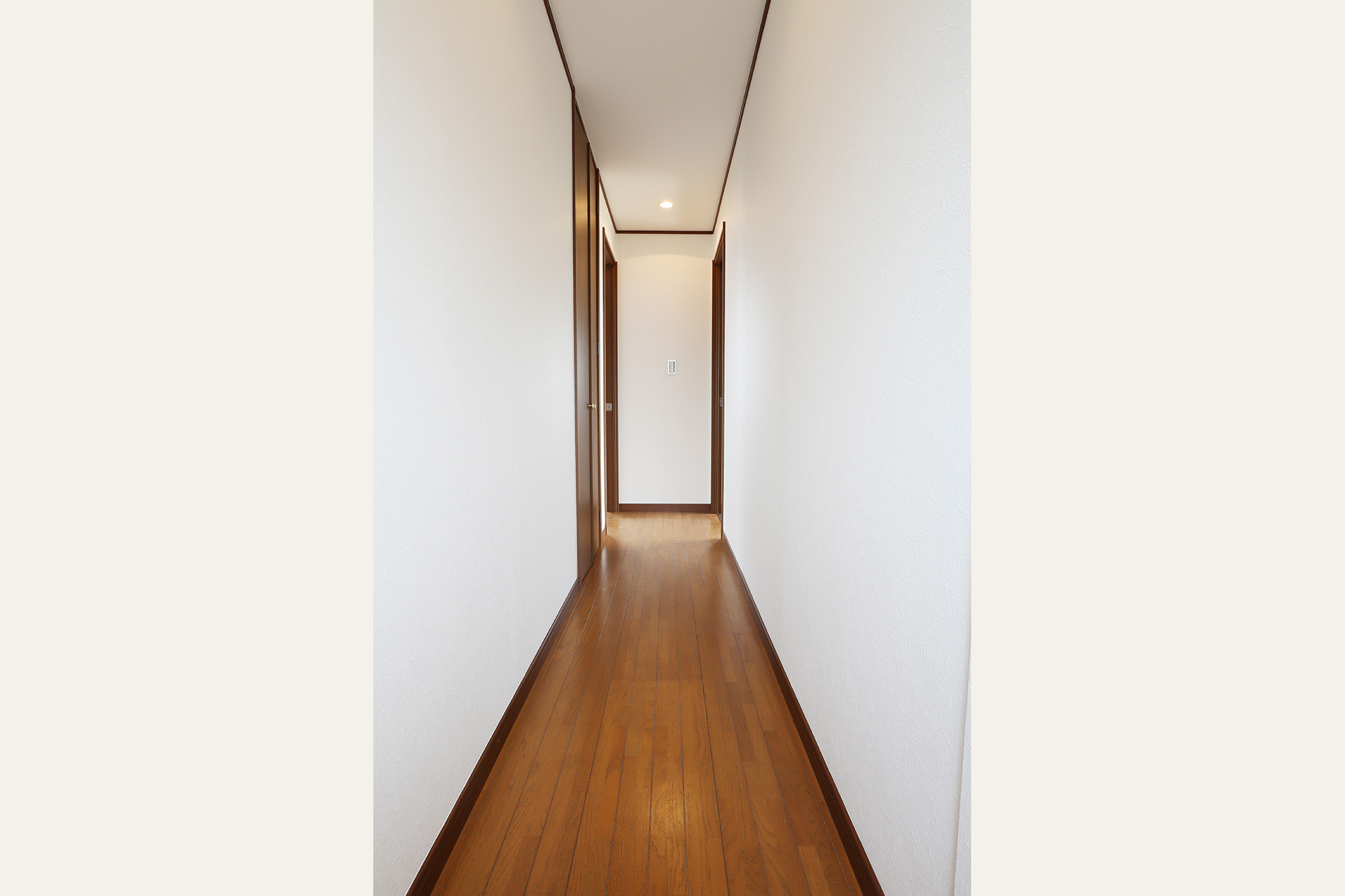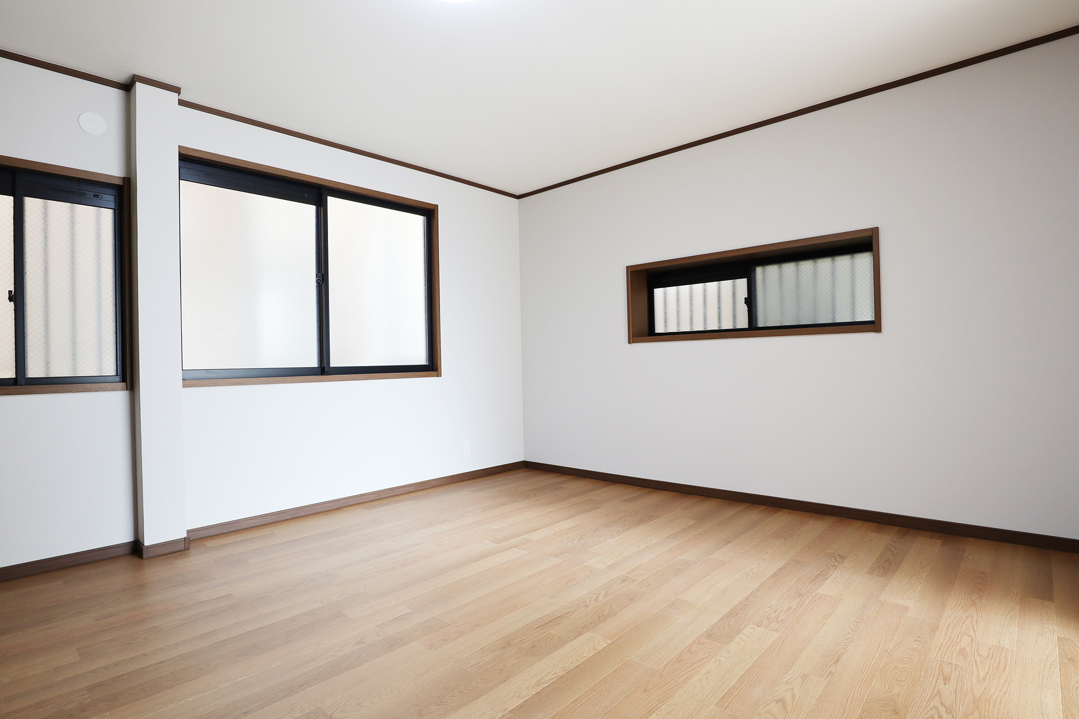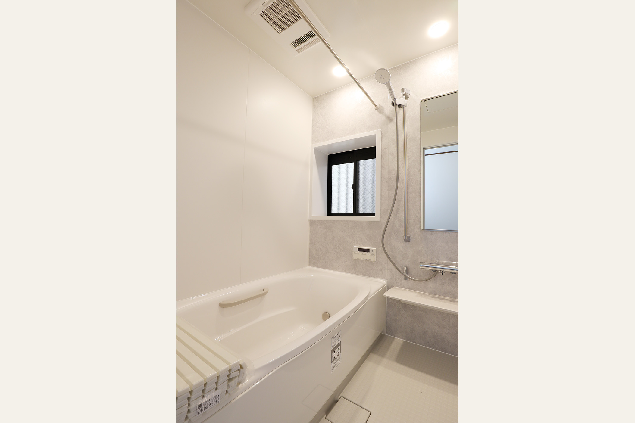今回特にこだわったのは、2階LDKの開放感と実用性の両立です。LDKに撤去ができない大きな壁を、壁の中央を長方形にくり抜くデザインを採用し、視線の抜けを確保しました。 開放感を損なうことなく、空間のアクセントとなる“見せる柱”として再構築しました。くり抜いた部分にはお気に入りの小物を飾るなど、 “魅せるスペース”としても活用できます。 キッチンは、動線・広さ・家具配置のバランスを検討し、位置を決定。広すぎず狭すぎない、調理に集中できるちょうど良い空間を目指しました。 TVを壁掛けで設置できるよう壁の下地補強も事前に施工し、内装の見た目と利便性の両立を図り、将来の暮らしにも対応できるよう備えています。